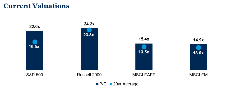 Valuations remain elevated across major indices. The S&P 500’s year-to-date gain of 17.8% leaves earnings multiples above historical averages. Positive earnings growth provides some justification, but the margin for error narrows. For long-term investors, being mindful of current valuations and thoughtfully allocating portfolios may help attain investment goals.